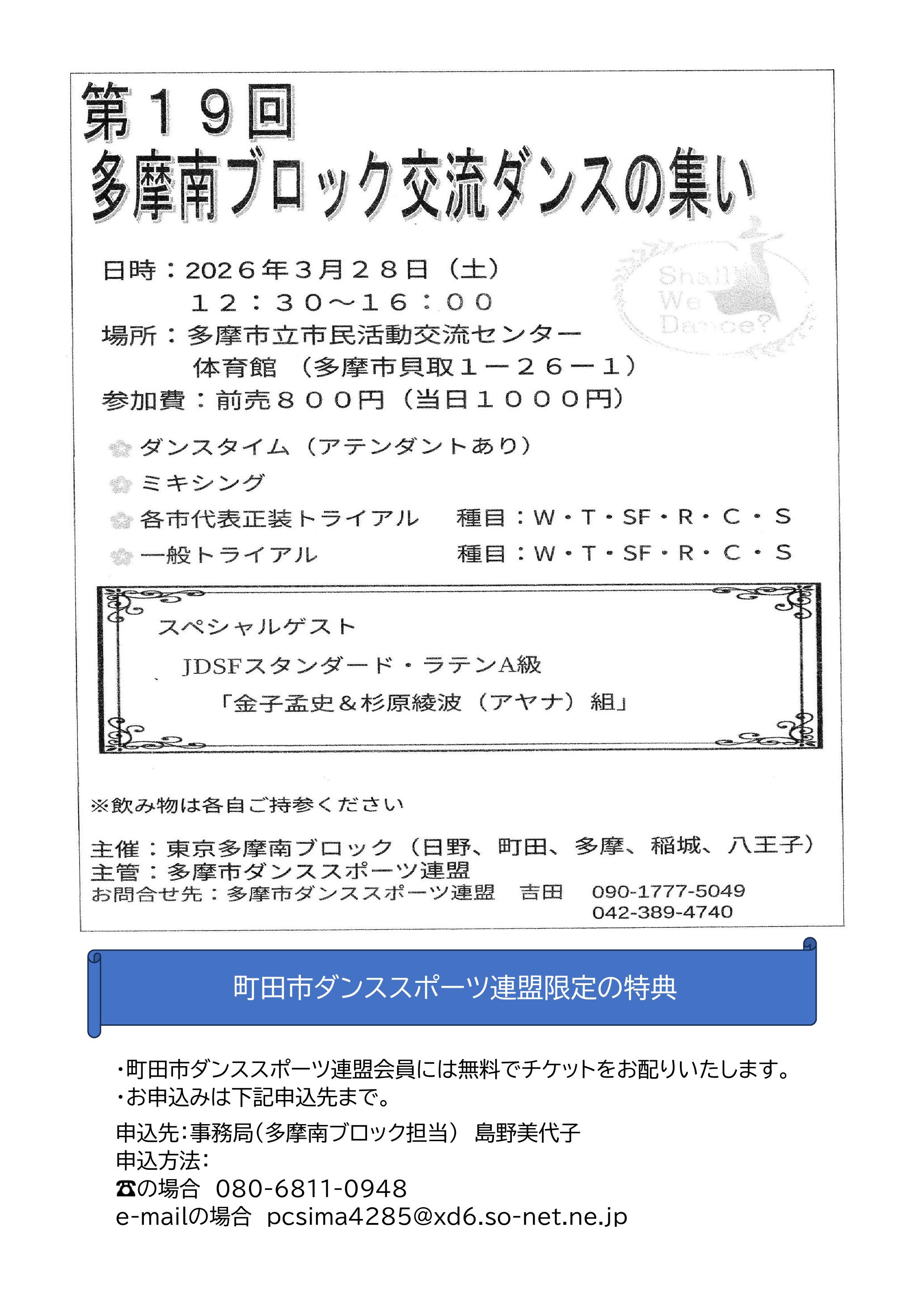 町田市ダンススポーツ連盟からも奮ってご参加下さい。 -連盟事務局-