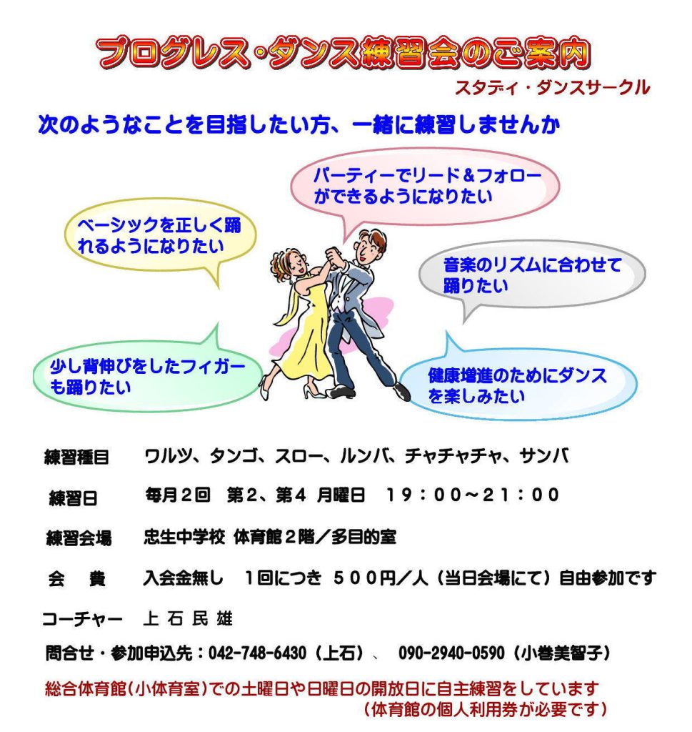「プログレス・ダンス練習会」への参加をお待ちしています!
